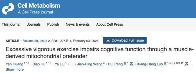 中南大学湘雅病院2025年发表在《细胞代谢》期刊上的赓续,就给咱们提了个醒:通顺一朝超降生体承受范围,不仅会酿成肌肉劳损、加要点脏包袱,还会偷偷损伤你的大脑!②
