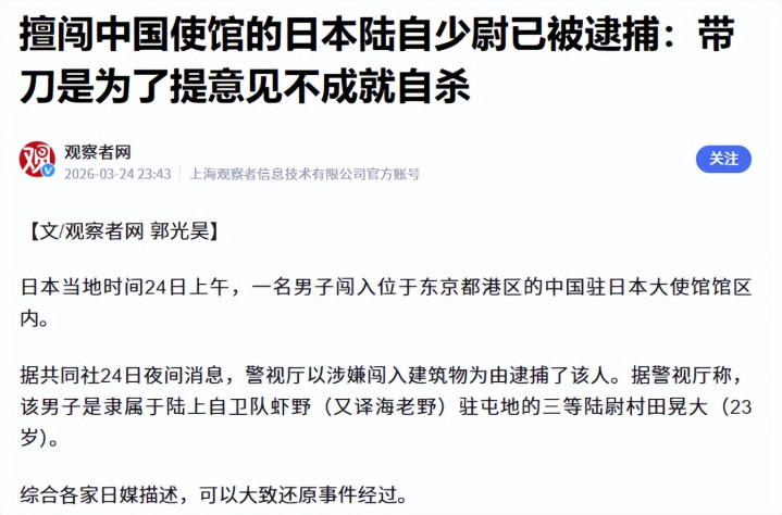 更让东谈主后背发凉的是警方在他被为止的隔邻,搜出了一把长18厘米的刀具,一个现役的日本自保队少尉,佩带凶器闯入番邦使馆还发出损失威迫,这一经完全跳出了正常违纪的边界,径直踩在了国度主权和酬酢安全的红线上。