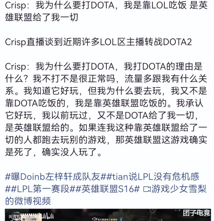 他的回复也挺犀利的,他说:Doinb去打DOTA是被骂破防了,他打LOL也没东说念主骂他,况且他又不是DOTA的奇迹选手,他是LOL的奇迹选手。