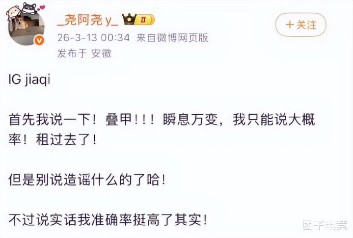 昨天咱们说了IG战队事情,开赴BLG的二队wenbo有可能加盟,同期下路也租来了TES的jiaqi,毕竟哥哥要回来了嘛。