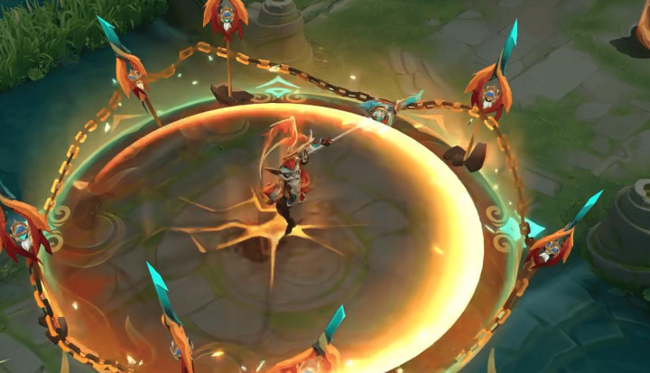 吕布的这款皮肤主打喜庆作风,身穿红色喜庆装饰,肩上披着舞狮,并为方天画戟也安排了一个舞狮球,和吕布之前的皮肤作风有着很大的反差。