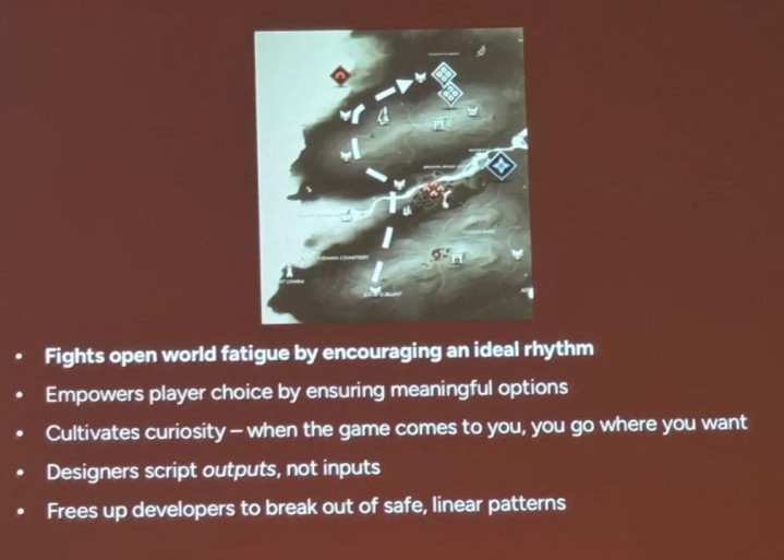 但《羊蹄山之魂》首席玩法圭臬员兼联想师此次的共享,就用“事件卡组”这个联想,以及5条黄金联想法例,把游戏里那套任务系统给拆解明晰了——他们果然用《龙与地下城》DM发牌的逻辑,代替了传统的平铺式任务列表,果真是天才。