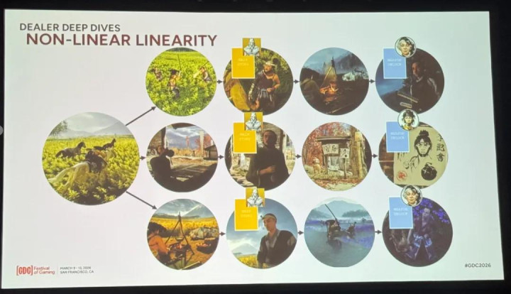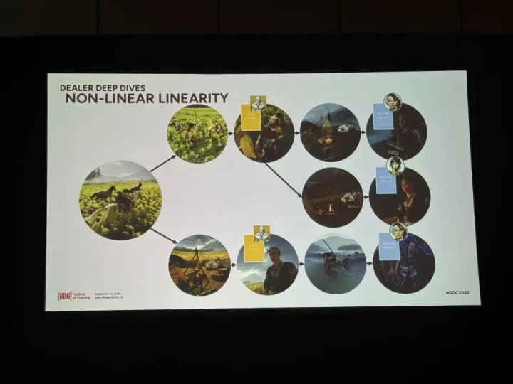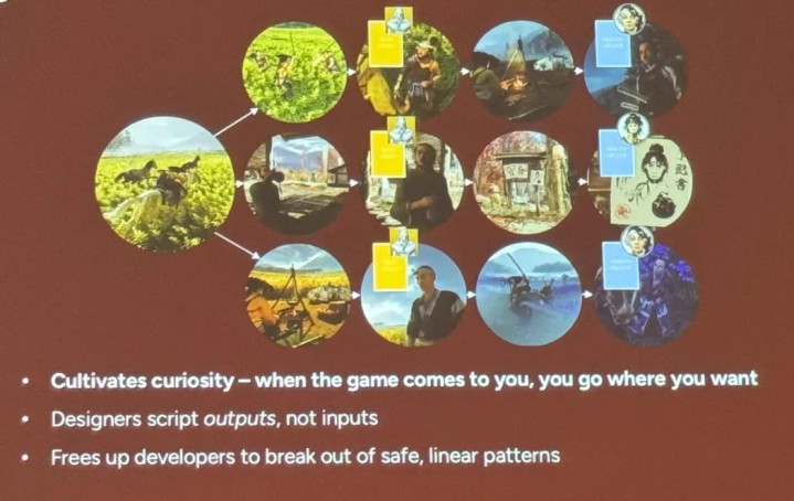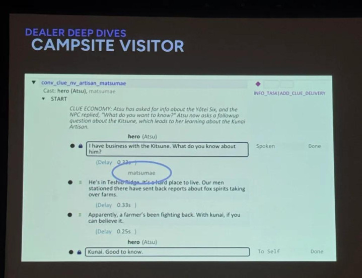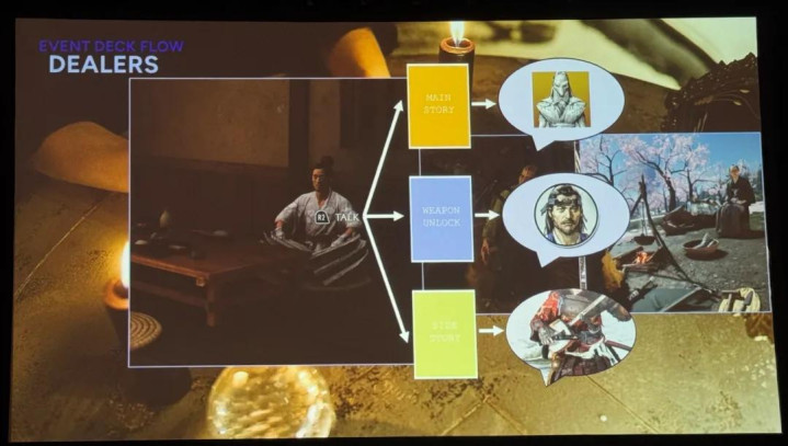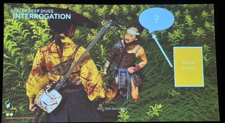 而且《对马岛之魂》里,咱们也作念过类似“和生分东谈主对话获取信息”的内容,是以这对团队来说,并不是一个完全生分的观念。实在的革新点,是这个有明确联想的内容序列。一言以蔽之,这套系统是随着咱们遇到的开提问题,一步步迭代、完善起来的。