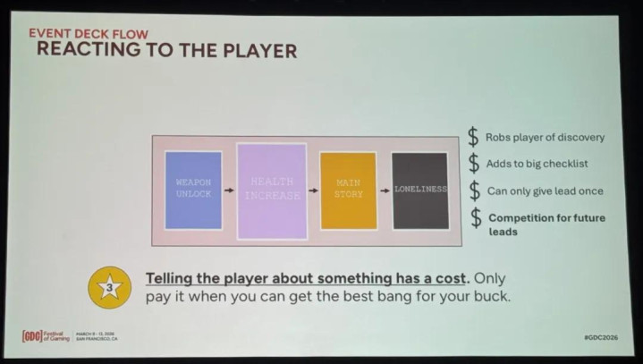 事件牌组的职责,不是逼着所有这个词玩家走统一条路,而是把咱们认为玩家会可爱的内容,推到他面前。要是咱们判断错了,玩家完全可以不听。但要是玩家频繁地忽略咱们给出的所有这个词信息,那事件牌组就失去了它的风趣。