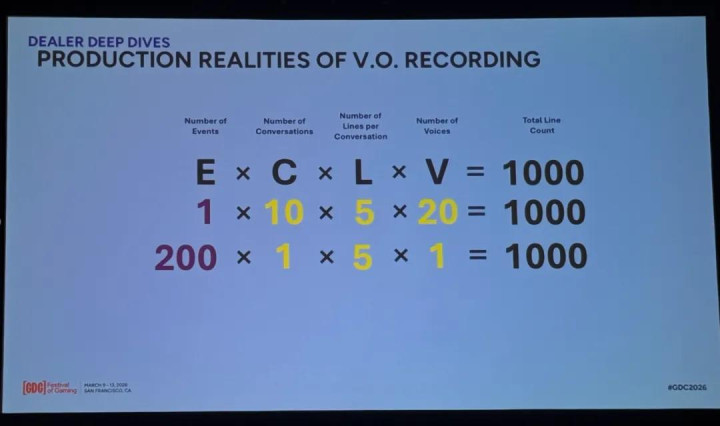 给人人算一笔账,你需要录制的台词总量,等于事件数目×每个事件的对话数目×每段对话的台词数目×录制的配音演员数目。