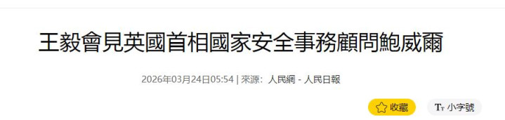 王毅會見英國首相國家安全事務顧問鮑威爾——东谈主民网