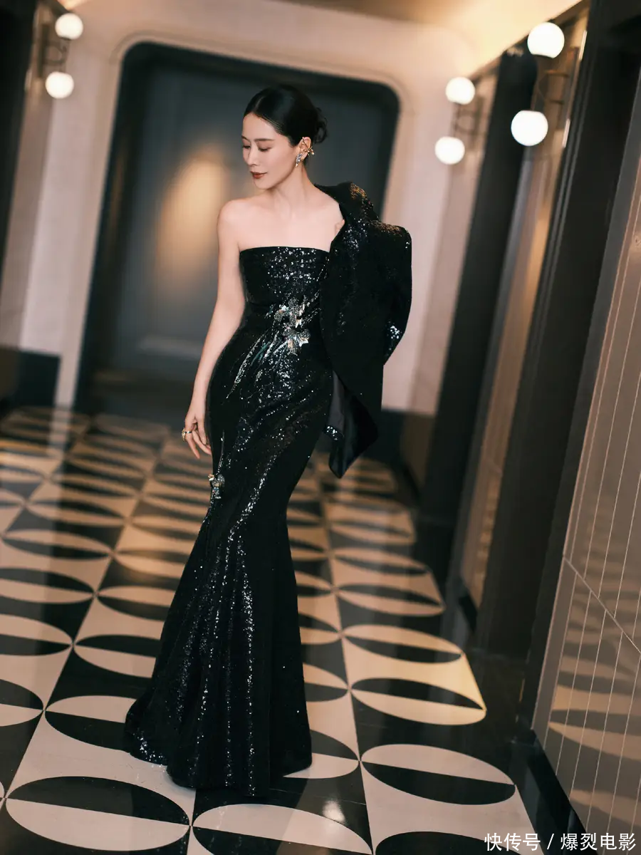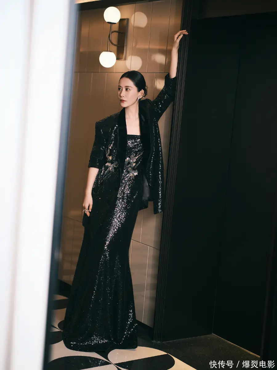 hg真人 海清活动好意思图释出,黑亮片鱼尾裙加捏,每帧齐尽显镇静贵气!