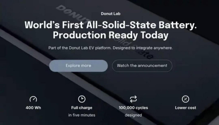 本年年头的CES展上,一家栽培一年多的芬兰公司Donut Lab发布了全球首款“可量产、可用于推行车辆”的全固态电板,堪称400Wh/kg能量密度,5分钟充至满电,轮回寿命长达10万次,且在零下30摄氏度和零上100摄氏度的顶点温度下,电板容量王人能保抓在99%以上。