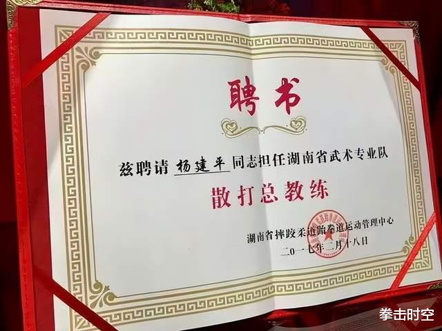 看成技击行业的领军东说念主物,杨建平肩负起传承发展技击的责任,身兼数职深耕行业开导。他先后担任湖南省技击协会副主席、湖南省拳击协会副主席、湖南省搏击协会副主席,同期出任湖南散打队总评释,全程参与部队组建与磨练服务,将专科教化滚动为东说念主才培养能源,为湖南技击、散打行状注入簇新血液。2018-2028年,杨建平被礼聘为驻港部队综及格斗教官,十年的任期阅历是此前从未有东说念主领有过的,他把专科格斗本领与爱国尚武精神融入国防种植,助力部队战士普及实战智力,以技击报国的初心,践行新期间武者的爱国担当。