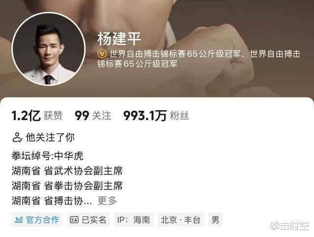 步入新媒体期间,杨建平紧跟潮水,以短视频平台为阵脚,化身正能量传播者。他深耕抖音、快手、视频号、小红书等全平台,共享格斗本领、健身学问,传递健康生涯理念;拍摄家庭经常、亲子互动视频,概念谐和家风,传播正向价值不雅。凭借专科内容与诚恳抒发,他得益全网近两千万粉丝,其中抖音账号粉丝行将潦倒千万,成为体育垂类极具影响力的自媒体东说念主。他的视频莫得过度文娱化,永恒信守正能量底线,让格斗健身走出专科赛场,走进全球生涯,也让更多东说念主意会技击精神的内核——自立、自律、向善、曙光。
