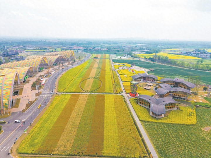 三月的蓉城,春意已浓。近日,记者来到成齐天府农博园,登上二十四气节塔鸟瞰,一条条小路在金黄色的花海间交错延迟,招引了不少旅客前来拍照眷顾。这片看似寻常的花海,处处藏着“科技密码”。
