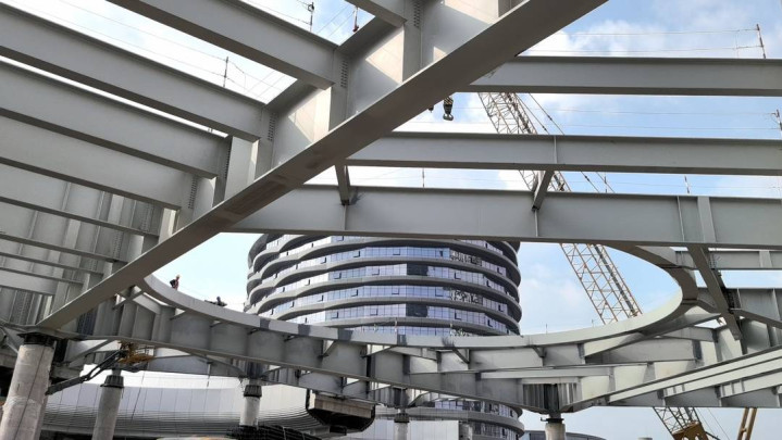 随跋文者来到“慢行花坛”的下方,从下往上看,B体育官方网站首页主体结构仿佛一个大型的拼图七巧板,而这里恰是低碳建造的好意思妙。“主体构件先在智能工场完成预制,再运至现场组装,同等建造量下,传统款式现场焊合经常需要4至5天,而现场组装仅需半天即可完成。”技俩时刻施展东说念宗旨豪示意,与传统浇筑混凝土比拟,装置式钢结构施工既保险质料,又减少工地扬尘、能耗与碳排放,缔造工期压缩4至6个月。
