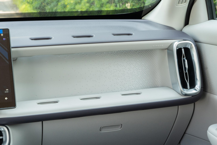副驾的魔术拓展坞是很贴心的盘算推算,和洞洞板的使用神情相似,可以吊挂多样小物件,搭配手机支架的话,坐在副驾的东谈主看视频、导航齐很方便,拓展坞还能搭配折叠小桌板使用,大开后可以舍弃电脑,日常出行途中如若有临时的责任需求,停驻车就能处分,实用性拉满。车内的手套箱空间很大,能放下14寸的札记本电脑,中置空调的布局让空间获取了充分利用,比较粗拙车型的手套箱,储物材干进步了不少,日常的杂物、出行的用品齐能邋遢收纳,无谓再为车内储物空间不及而苦闷。