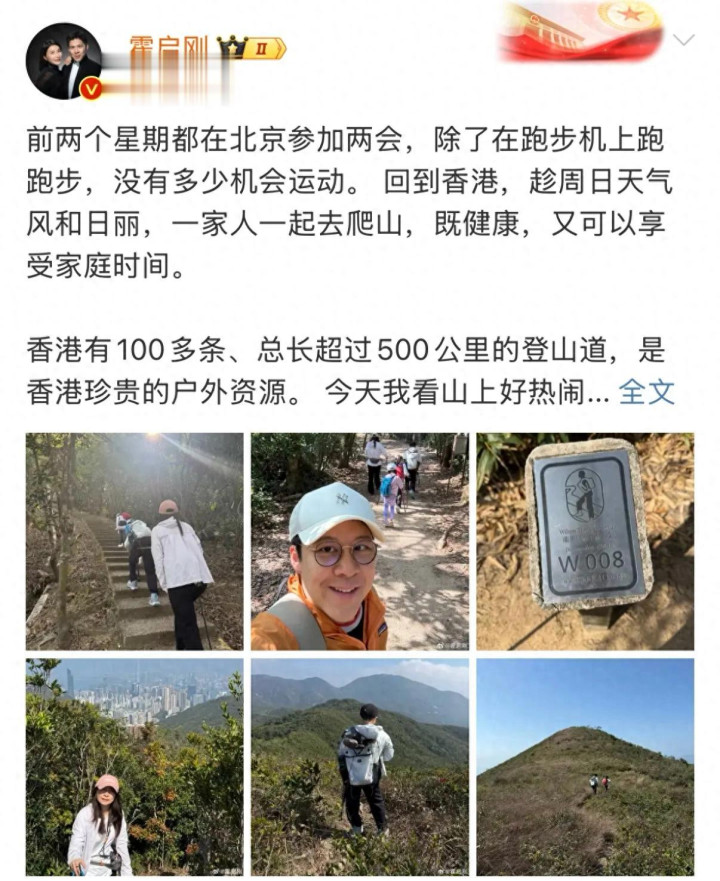 像片中,霍启刚头戴白色棒球帽,身穿橙色外衣,孤苦孤身一人畅通装很显活力。他面带笑脸拿入部下手机自拍,还把妻儿背影王人拍入镜,郭晶晶和三个孩子拿着登山手杖往前走,每个孩子王人背着一个大包,寥落智力强,膂力还超好。