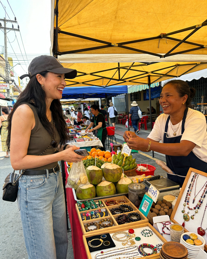 瞿颖并未刻意去学习泰语,于今一句泰国话王人不会说,却在生存中摸索出了属于我方的交流方式。她用带着泰式作风的普通话,与当地的商贩调换、砍价,顺利融入了当地的估客生存,这么的情景,也让她在清迈的生存过得冷静又骄气。