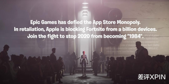 其时战况之强烈,Epic 平直翻拍了 1984 年苹果经典告白( 控诉老恶龙 IBM ),控诉苹果公司从“ 当年的屠龙少年,如今酿成恶龙 ”,而 E 宝即是新一代向恶龙挥刀的豪杰。
