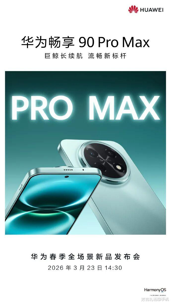 本次发布会上将带来两款新机:畅享 90 Plus、90 Pro Max。这应该是昨年华为Mate 80 Pro Max之后,华为的第二款Pro Max机型。