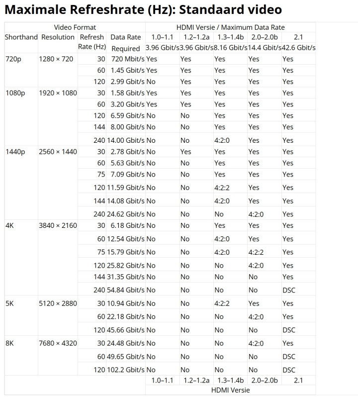 上图先容了HDMI各个版块的带宽及对应的刷新率和分辨率,看似特殊复杂,然则通过正常使用最容易出现困扰的惟有两个方位,其一在于HDMI 1.4接口无法相沿4K 60Hz,是以最佳外接1080P或2K知道器;其二,HDMI协会照旧将HDMI 2.0b改名为HDMI 2.1 TMDS,带宽方面二者一致,相沿的分辨率、刷新率也一致,但好多OEM厂商不会将HDMI 2.1 TMDS中的“TMDS”版块标注出来,让东谈主误觉得是咱们传统意旨上通晓的、着实的48Gbps带宽的HDMI 2.1 FRL。以上两点需要扎眼。